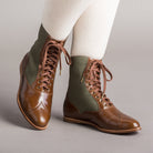 From Alpine to Avonlea, Anne Boots are a quintessential historical style that is just as attractive as it is versatile. These lovely lace-up boots feature leather and cotton twill uppers, a double-stitched toe-cap, and a gracefully curved top.