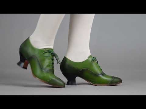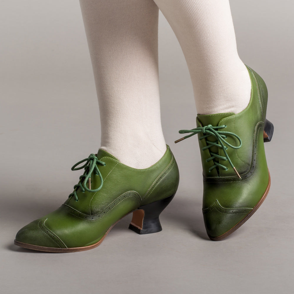 Whether you are fighting for the right to vote or exercising that right today, the Londoner Edwardian Oxfords will keep you on your feet, on the go, comfortably, and chic all day long. Made of real leather with leather lining and soles, these beautiful reproduction Edwardian oxford shoes feature an adjustable lace-up closure, eyecatching broguing on the uppers, a stacked-look French heel, and a unique ombre patina finish. Paired with walking skirts of the 1910s or high-waisted trousers of the 2020s, the timeless Londoner oxfords are an excellent choice.