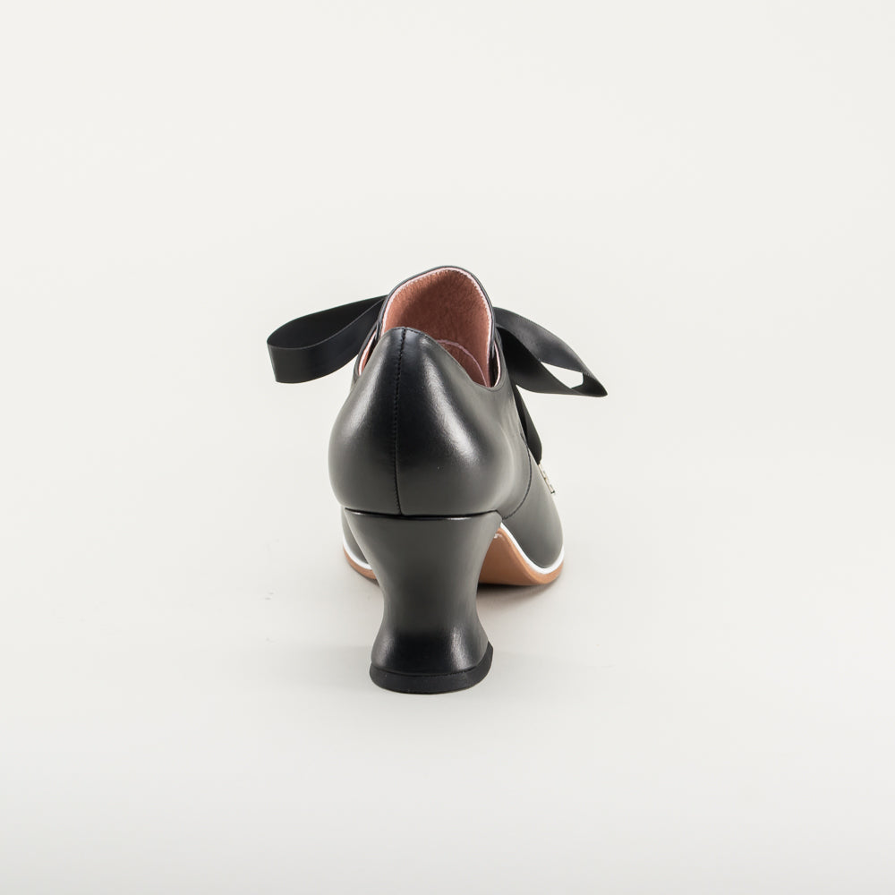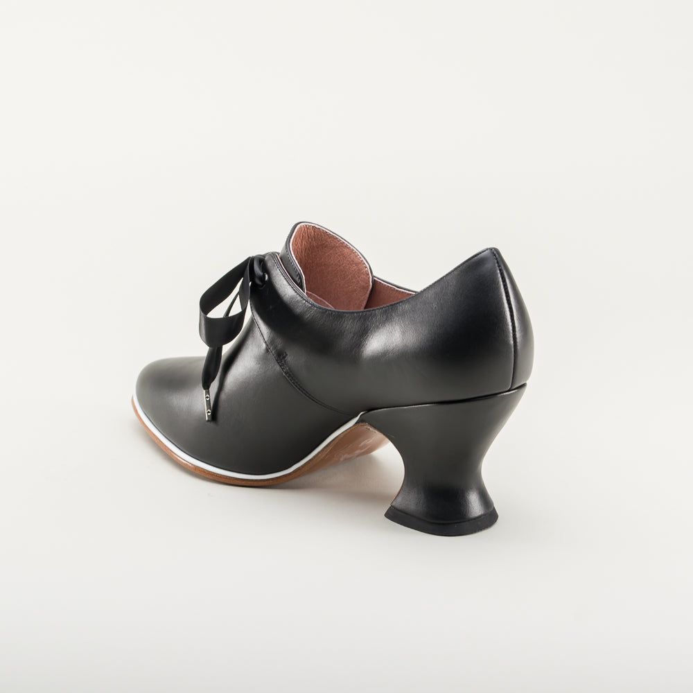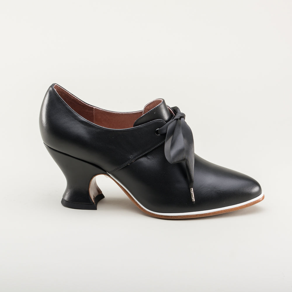 Named for the famous Madame de Pompadour, these heels are closely based on extant early 18th century shoes found in museums, and feature an easy tabbed closure that can be laced with your favorite colored ribbon, cockade, or pom-pom decoration.