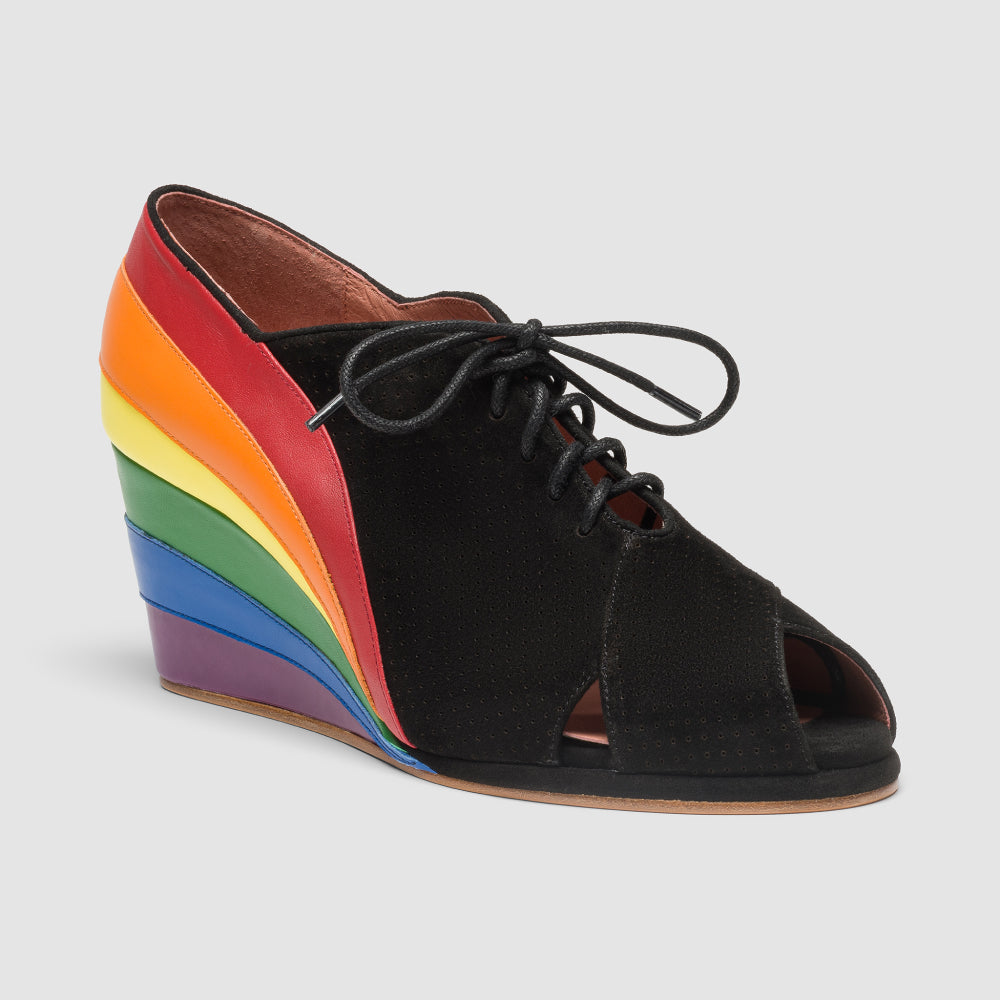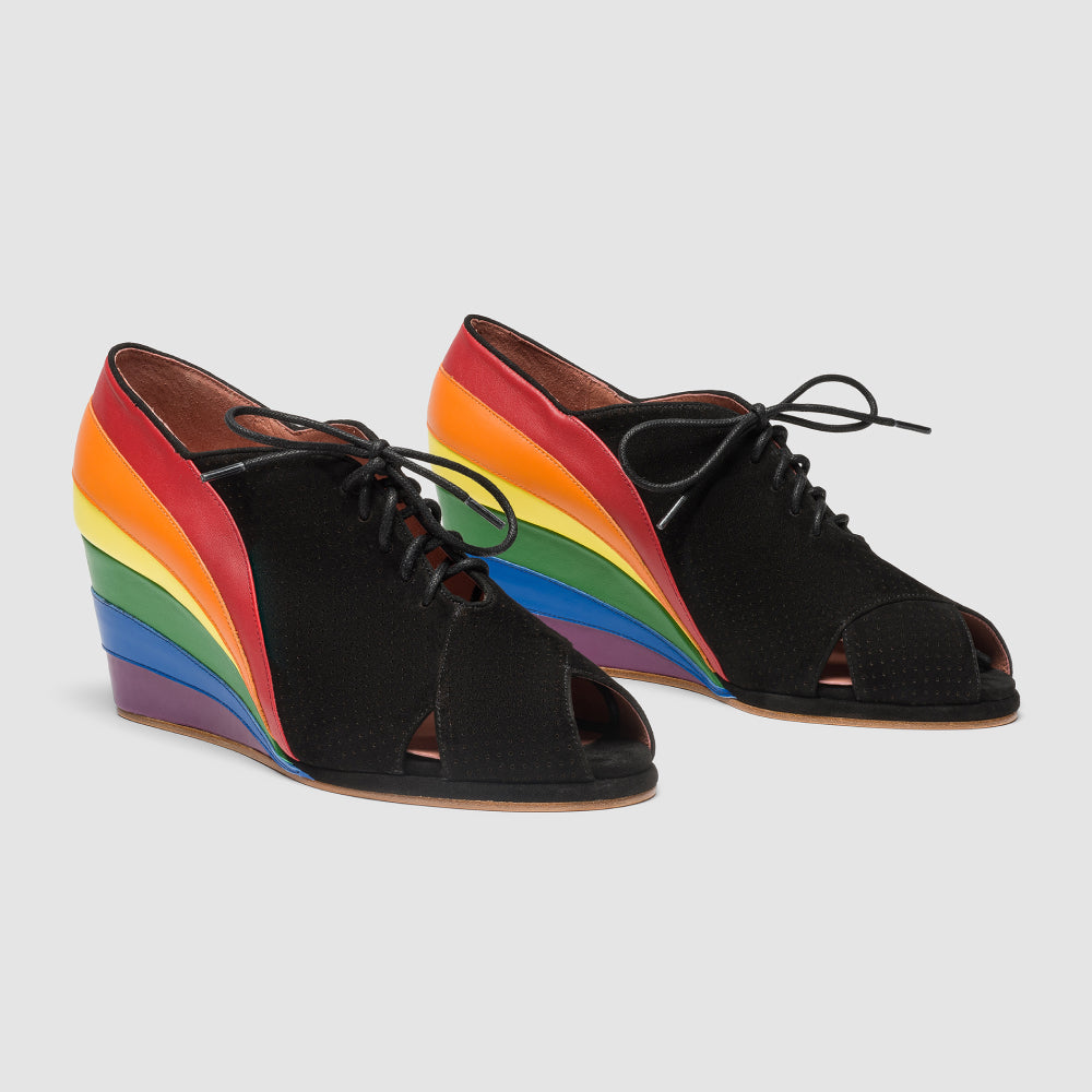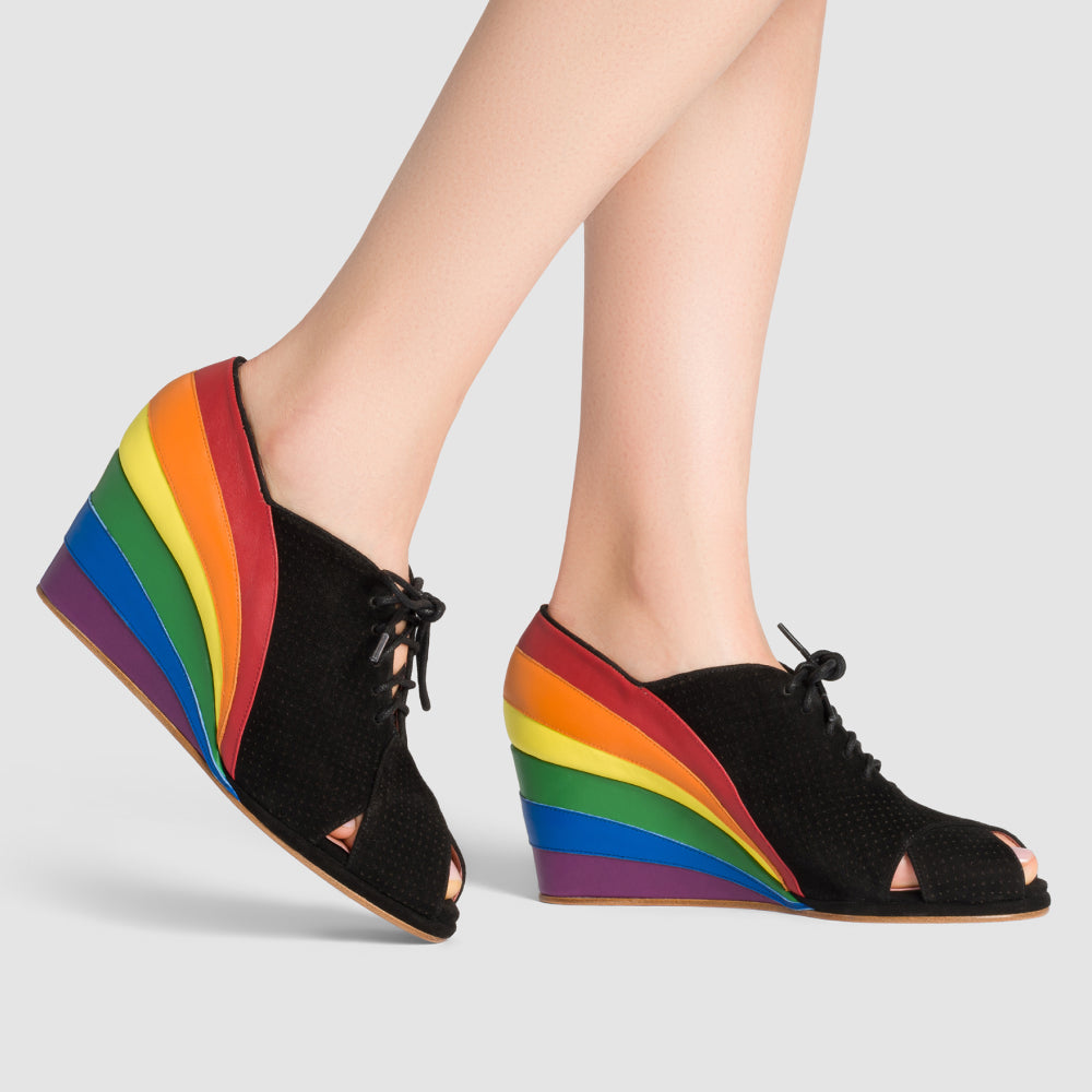 Esme 1930s Wedges Pride Edition (Black/Rainbow)