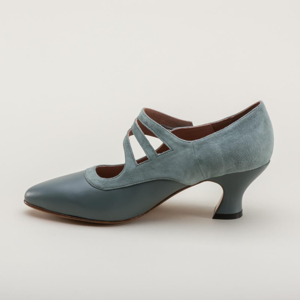 Developed directly from an original 1900s design, the Mae feature tone-on-tone suede and smooth leather with a sophisticated Mary Jane strap crossing elegantly over the instep. The 2.25 in / 5.7 cm French heel is delicate and well-balanced, paired with a pointed toe to create the perfect Edwardian and 1920s silhouette.