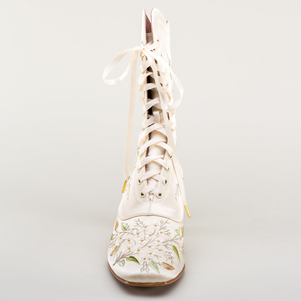 Flora Embroidered Boots (Ivory)